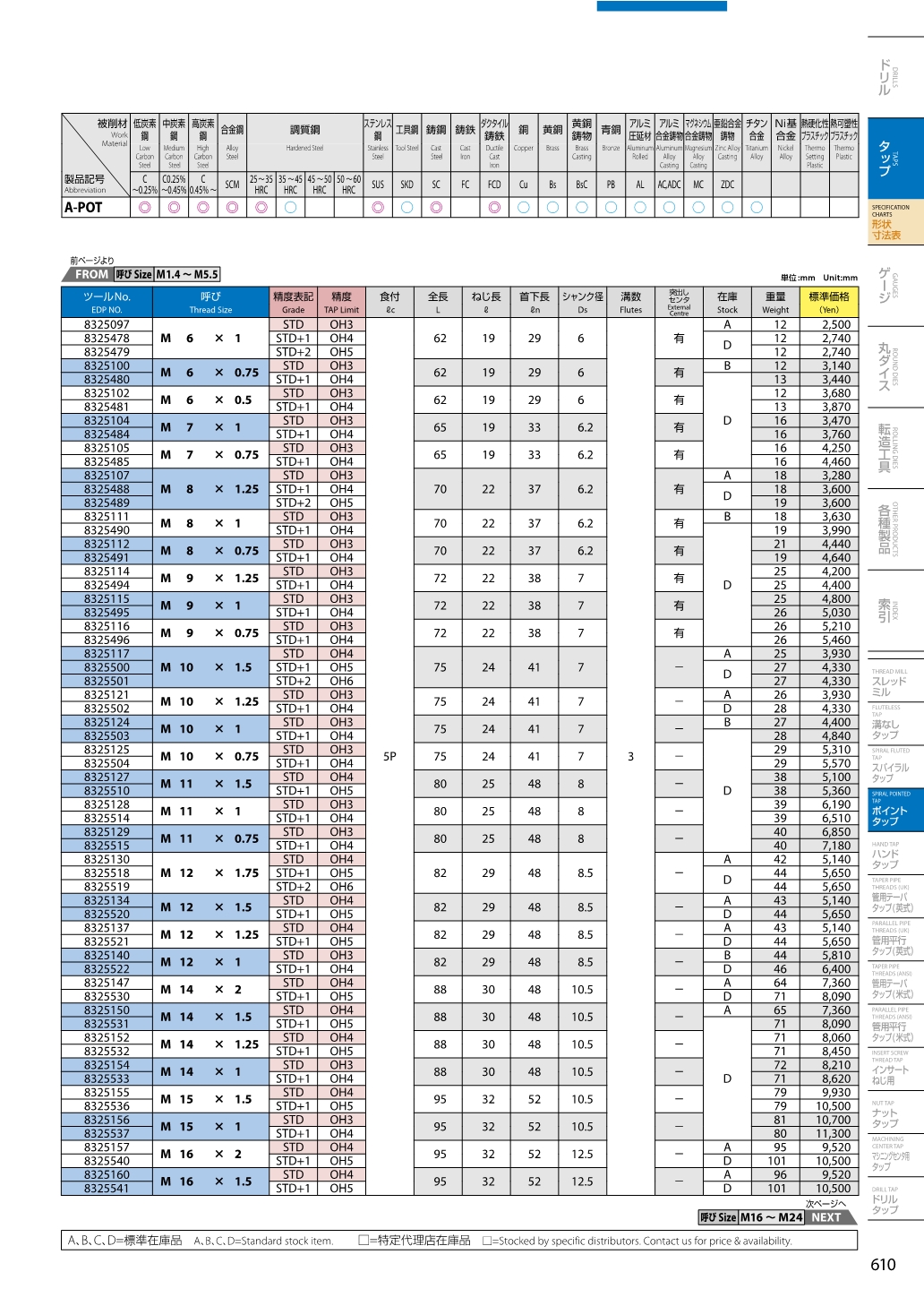 ต๊าปเครื่องสำหรับต๊าปงานรูทะลุ สัญลักษณ์เกลียว (M) วัสดุต๊าป CPM Powder Metallurgy ชุบ V Multi-layered Coating