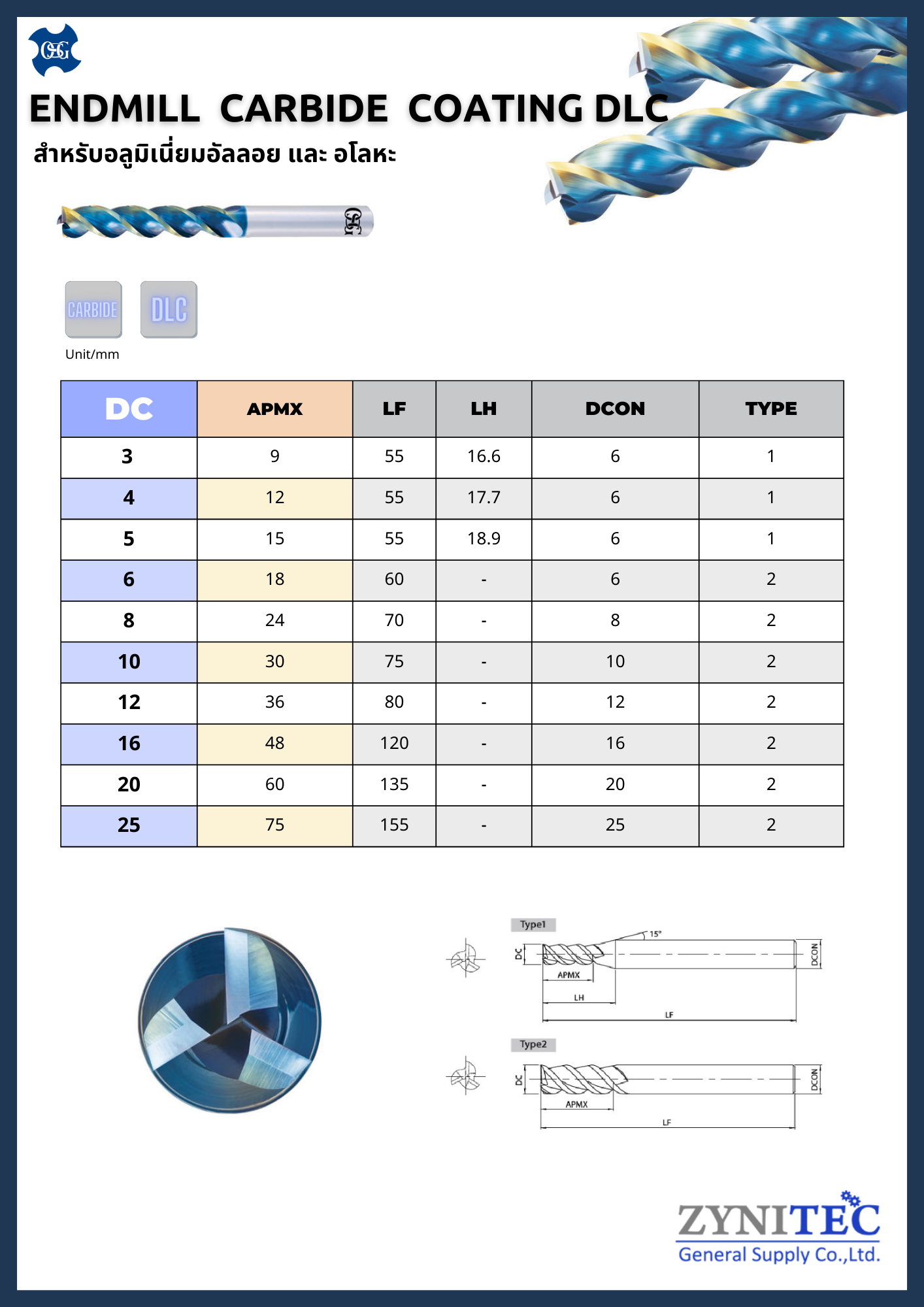 ดอกเอ็นมิล กัดงานอลูมิเนียมอัลลอย และ อโลหะ จาก OSG เทคโนโลยี DLC SUPER HARD Coating.