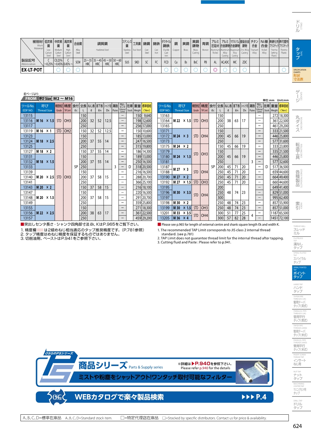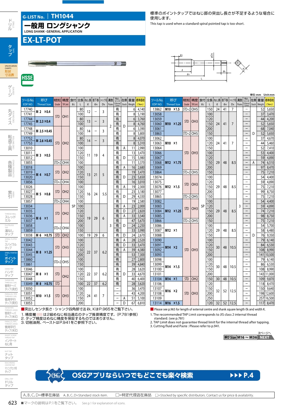 TAP Informationต๊าปเครื่องก้านยาวสำหรับต๊าปงานรูทะลุ สัญลักษณ์เกลียว (M) วัสดุต๊าปHSS-E