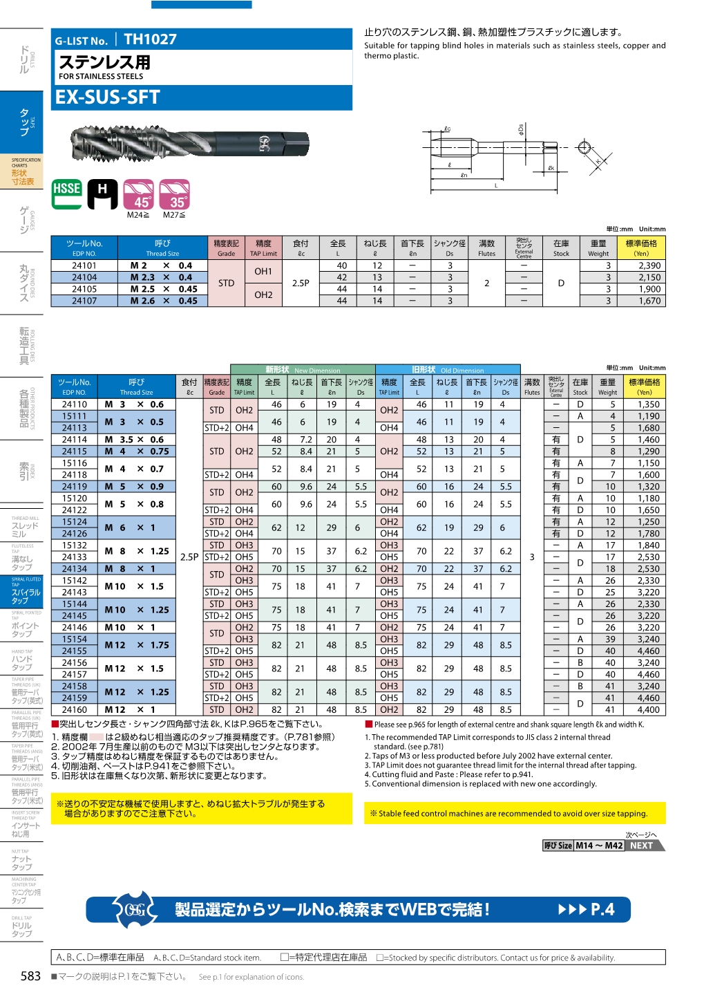 ต๊าปเครื่องสำหรับต๊าปงานสเตนเลสรูตัน สัญลักษณ์เกลียว (M) วัสดุต๊าปHSS-E Steam Oxide
