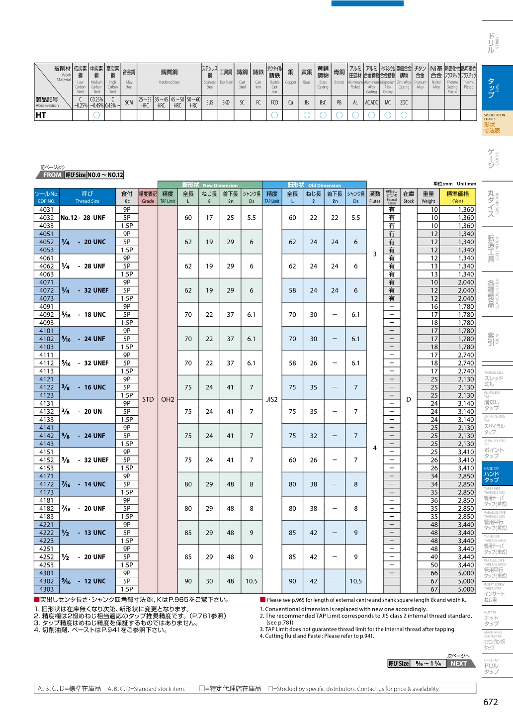 ขนาดที่มีจำหน่าย (No.0-80UNF~4-8UN)