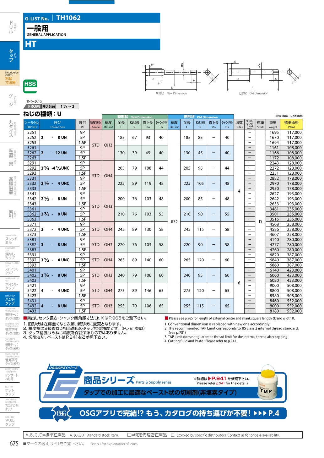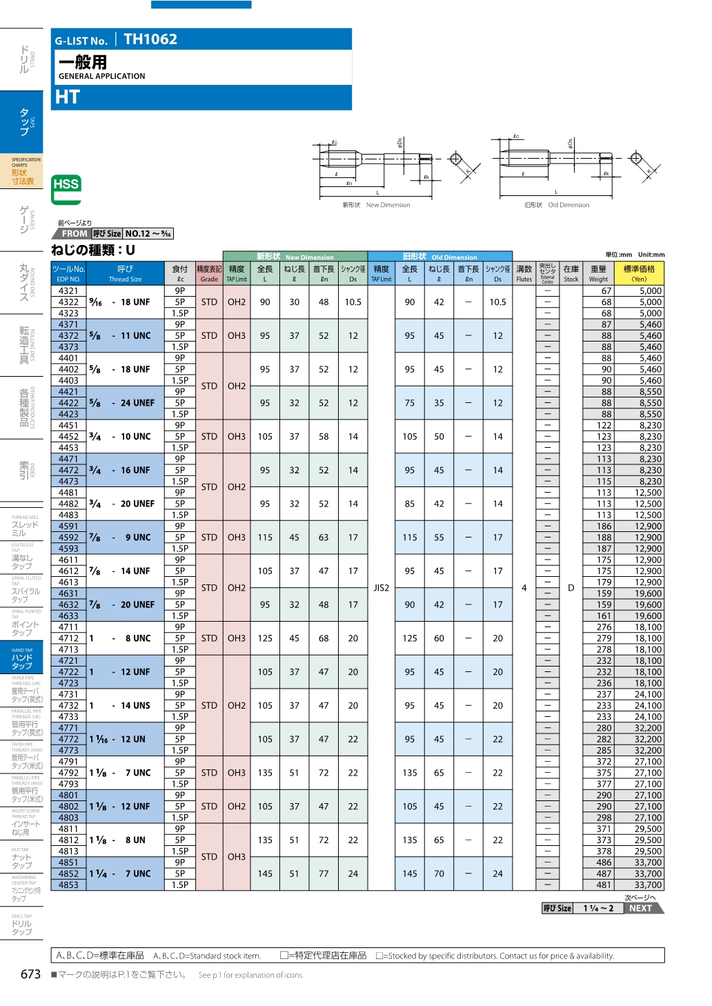ต๊าปมือ สัญลักษณ์เกลียว (U) วัสดุต๊าปHSS